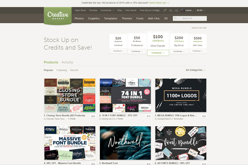 Wortwörtlich ein Markt für alles Kreative. Angeboten werden Fotos, Graphics, Templates und Themes, aber auch die neuesten Schriften (nicht kostenlos!). Jedoch gibt es jeden Montag 6 Freebies.